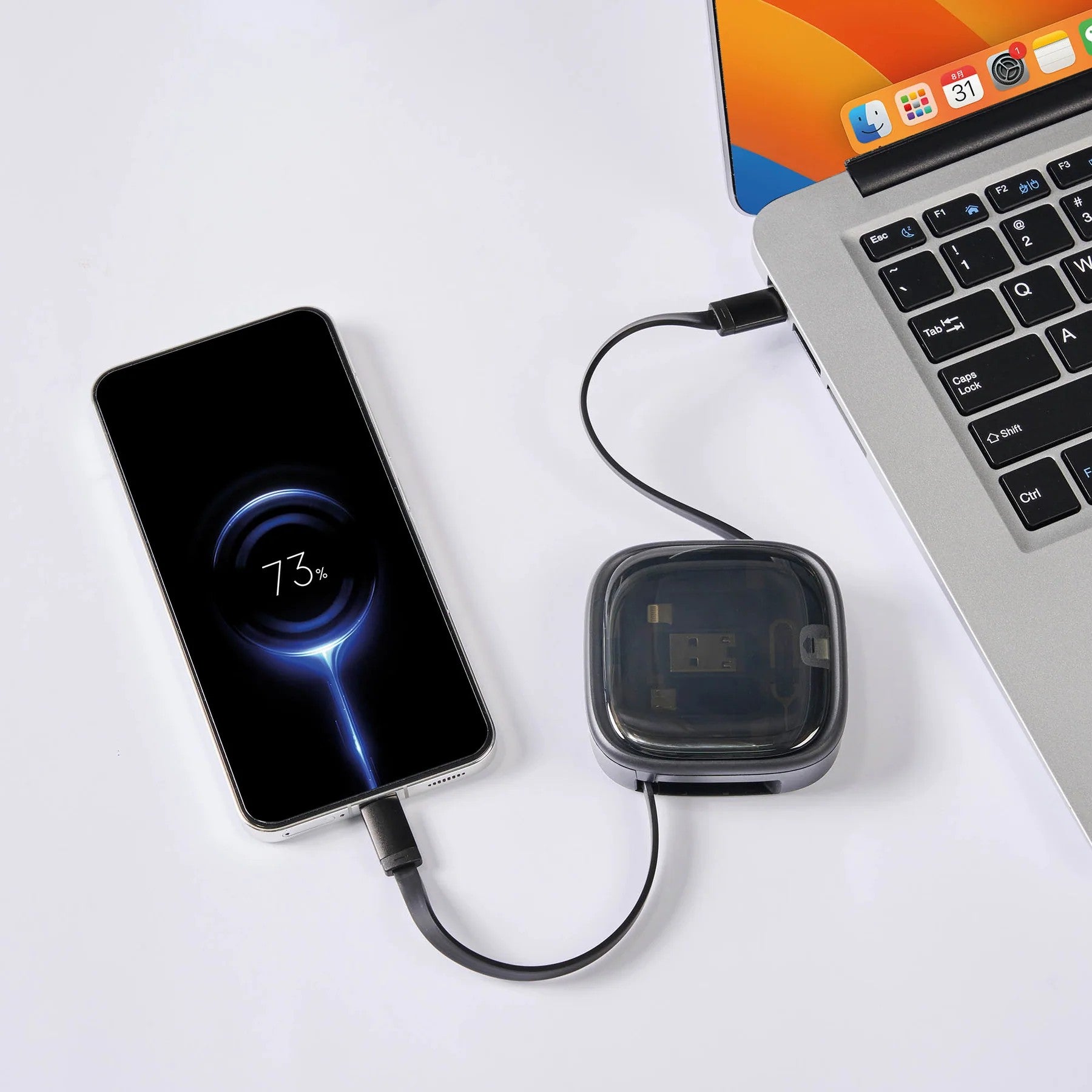 - What's included: 1M USB-C to USB-C Retractable Cable, interchangeable adapters (USB-C to Lightning adapter, USB-C to micro-USB adapter, and USB-C-to-USB-A adapters) and 1 x SIM card removal pin