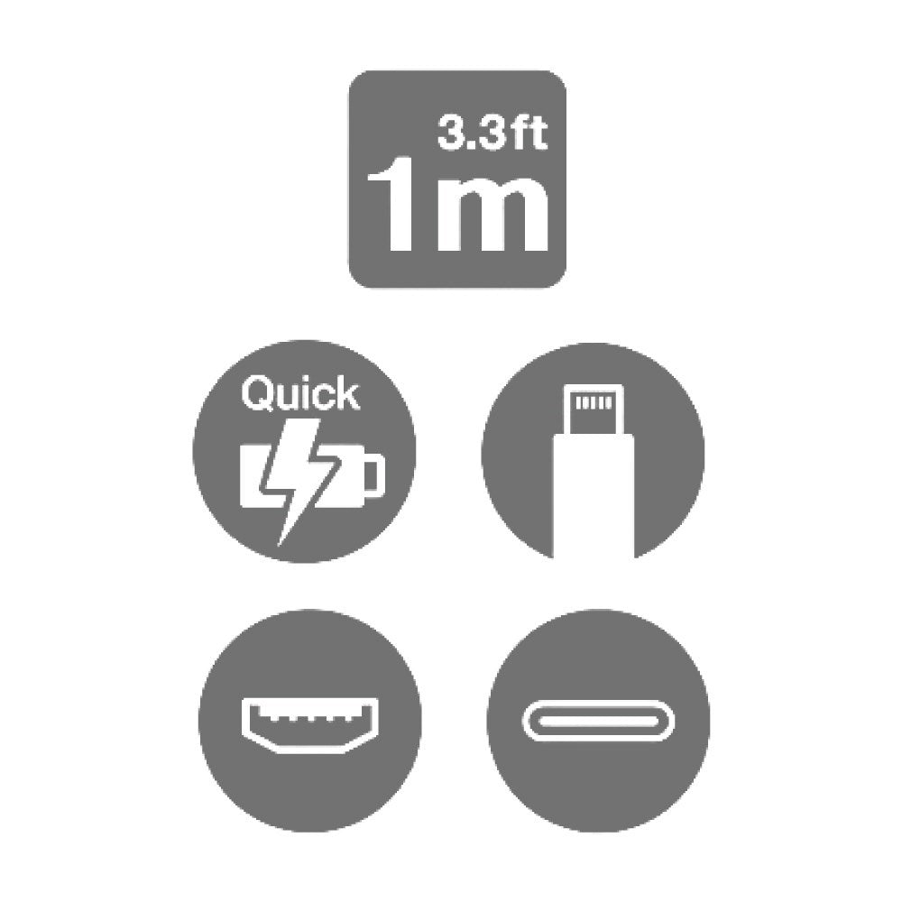 This durable and easy-to-use intelligent cable is perfect for travelers who bring multiple smartphones on their trips, as it reduces the hassle of carrying different cables or connectors. It's a smart cable solution - one end comes with cable, featuring Lightning, Micro-USB, and USB-C connectors that are suitable for most popular smartphones/tablets from brands like Apple, Samsung, Sony, Huawei, etc. The other end is dual interchangeable and features a USB-C or USB-A connector, allowing great flexibility to fit your USB-C/USB-A wall charger or laptop.